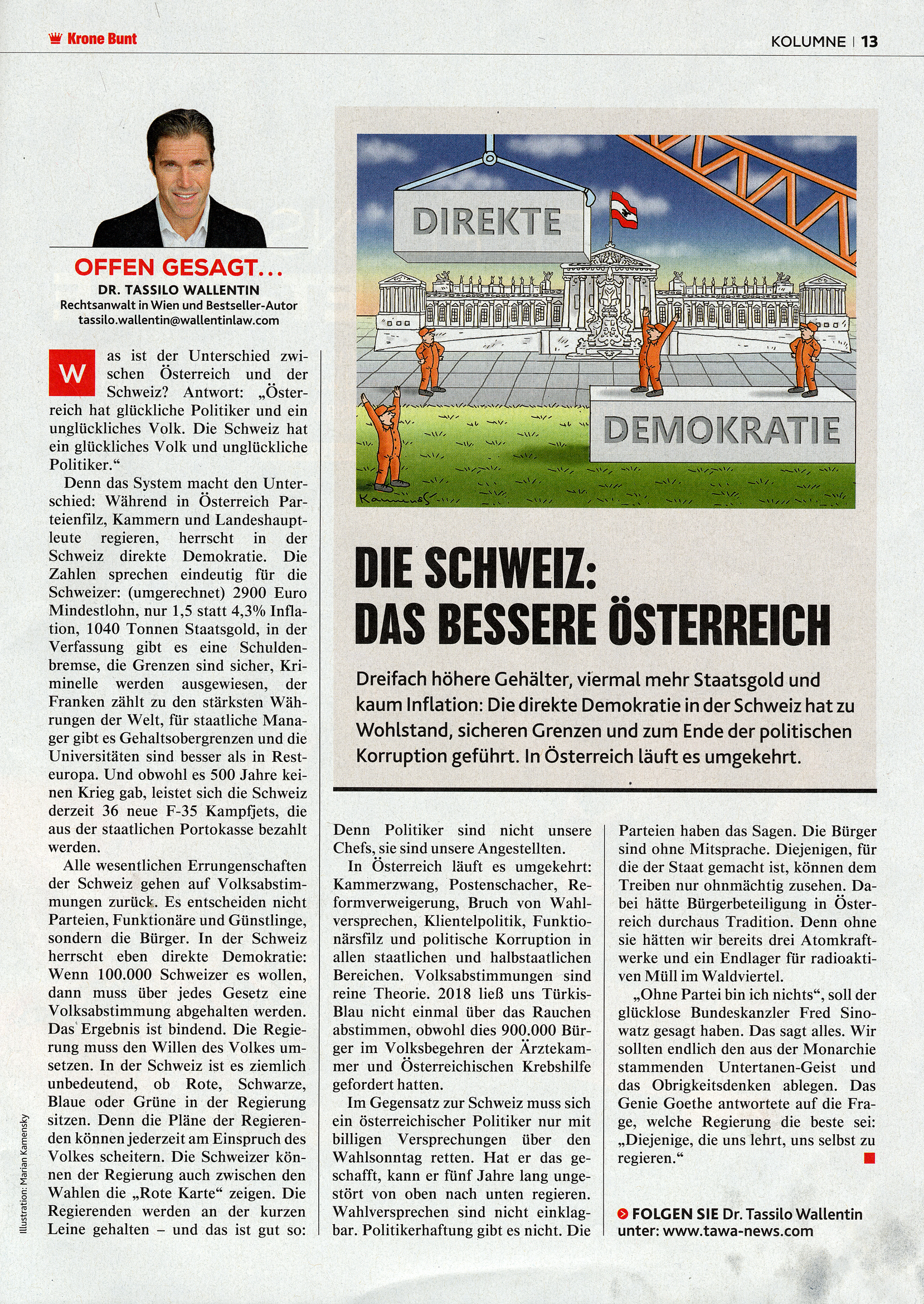 PS: anno 2022Tassilo Wallentin in der Kronenzeitung - 9. Jänner 2022 |