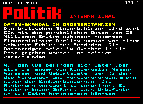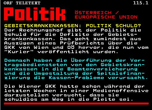 Seriöse Journalisten müßten im ORF berichten was der Gegenstand der Auseinandersetzung zwischen Ärztekammer und Gesundheitsministerin ist. Erst zu allerletzt ist es von Interesse, ob der Streik nun ausgesetzt wird oder nicht. Vertreter beider Streitparteien müßten in Interviews und in Berichten zu Wort kommen, worum denn eigentlich gestritten wird. Das brisante und für alle Österreicher sehr wichtige Thema des Streites wird aber im ORF beharrlich verschwiegen und lediglich über das wenig bedeutende Thema: Streik - ja oder nein - wird berichtet, um doch pro forma der Berichterstattungspflicht irgendwie nachzukommen. Erst wenn unser wunderbares Gesundheitssystem kaputt ist würden die Leute bemerken was hier gespielt wurde. |